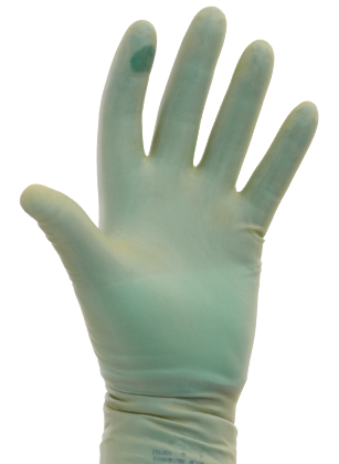 DermAssure’s dark green hue makes it easily seen when there is a perforation in the lighter-color outer glove.